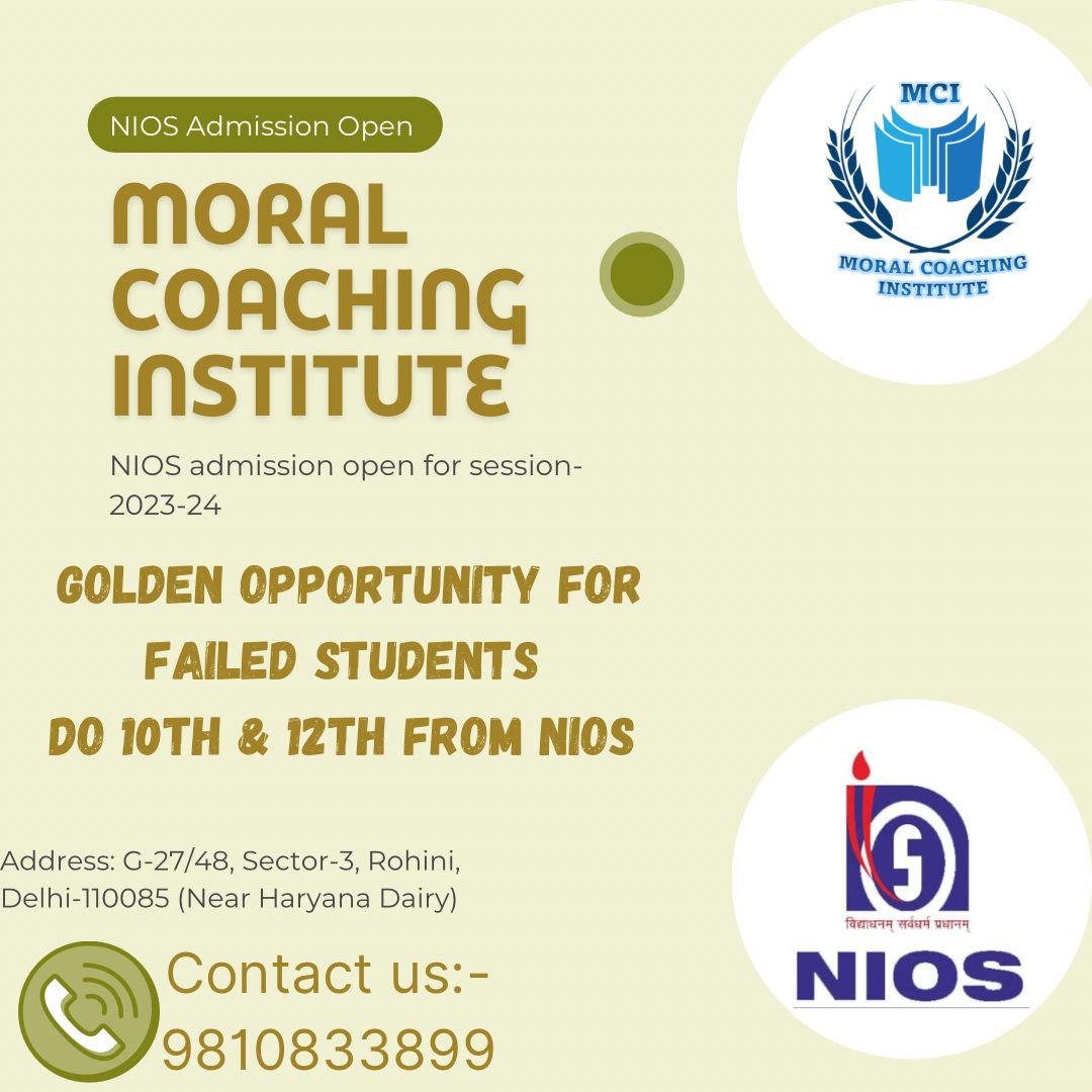 If by some chance you have not been able to pass your class IX examinations in school, but you do not wish to repeat another year, then you can opt for this school. In fact, as mentioned above, if you have completed your class VIII education and have passed the examination, but have missed out on one year after that, then you can directly apply for NIOS Open schooling admission to class X in Moral Coaching Institute. The application process is rather simple. All you will have to do is collect a form from their headquarters or access one online. download the form, fill it up and submit it for direct admission. Since there is a provision for direct admission into the NIOS OPEN SCHOOLING, one does not have to worry about their application getting rejected. All you need to is fulfil the eligibility criteria and get direct admission into one their courses for class X. Individual attention and a carefully structured syllabus will help a candidate to score more in their board examinations.